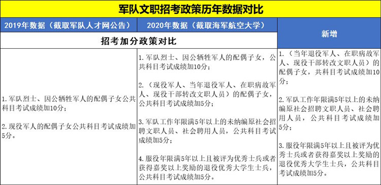 2020年軍隊文職考試預(yù)公告陸續(xù)發(fā)布!今年招考變化頗多,招錄人數(shù)增加、加分群體范圍擴大、筆試內(nèi)容有調(diào)整、福利待遇增多、免試政策、戶口政策……